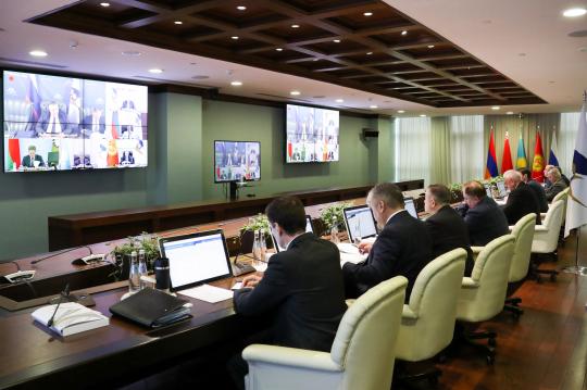 An online meeting of the Eurasian Economic Commission's Council chaired by Alexey Overchuk, Deputy Chairman of the Government of the Russian Federation, involving Members of the EEC Council and Mikhail Myasnikovich, Chairman of the EEC Board, was held on April 20-21 in Moscow.